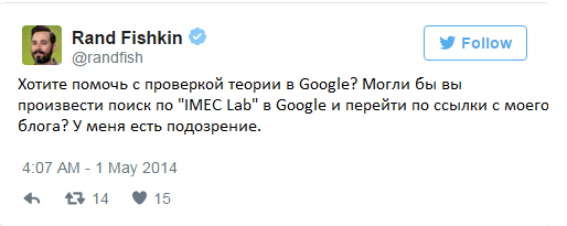 Эксперимент проводился Рендом Фишкиным (хорошо всем известный Moz). Сценарий эксперимента был достаточно прост: нужно, чтобы группа людей поискала определенное слово в Google, чтобы она кликнула по нужному результату в поиске и немного побродила по сайту. Необходимо было посмотреть, как сильно вырастет позиция сайта по этому запросу.